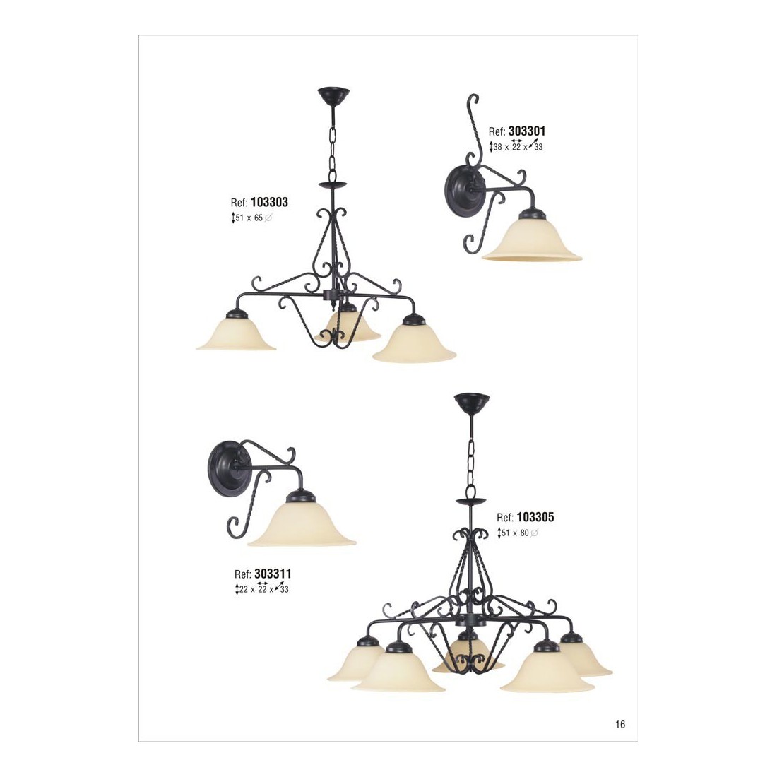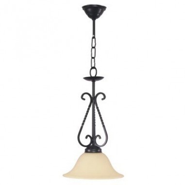Lámpara de Techo de 1 luz de Forja Negro Tulipa de Cristal. 1 Luz, Bombillas Bajo Consumo. Altura Ajustable.
