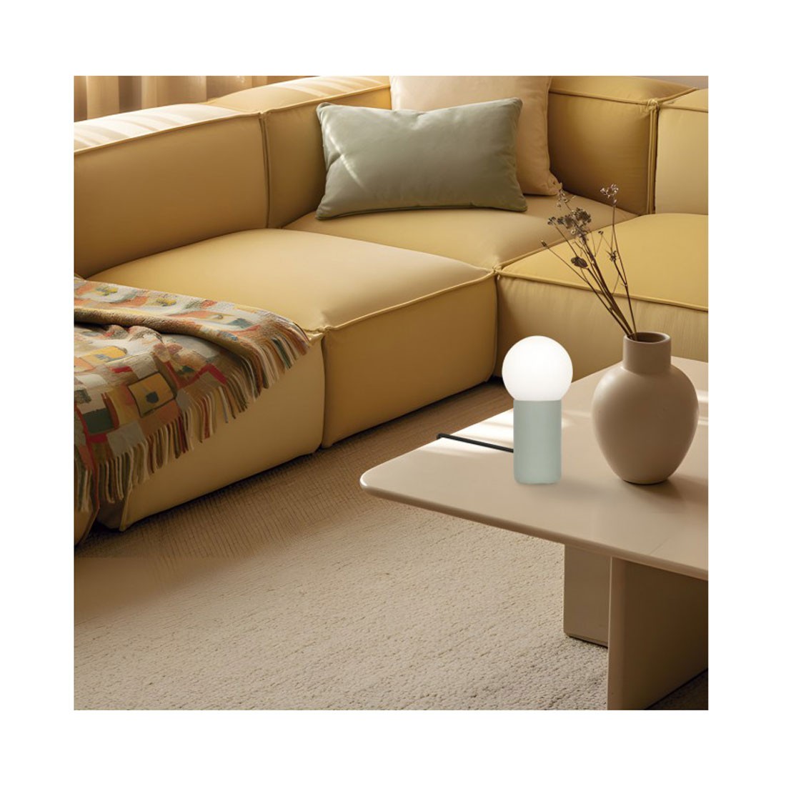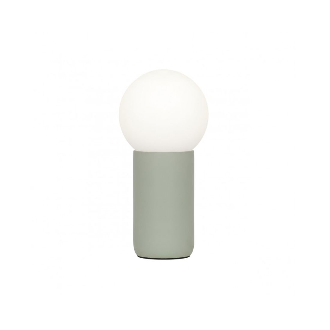 Lámpara sobremesa de 1 luz de metal verde y tulipa de cristal bola blanca de 12 cm.