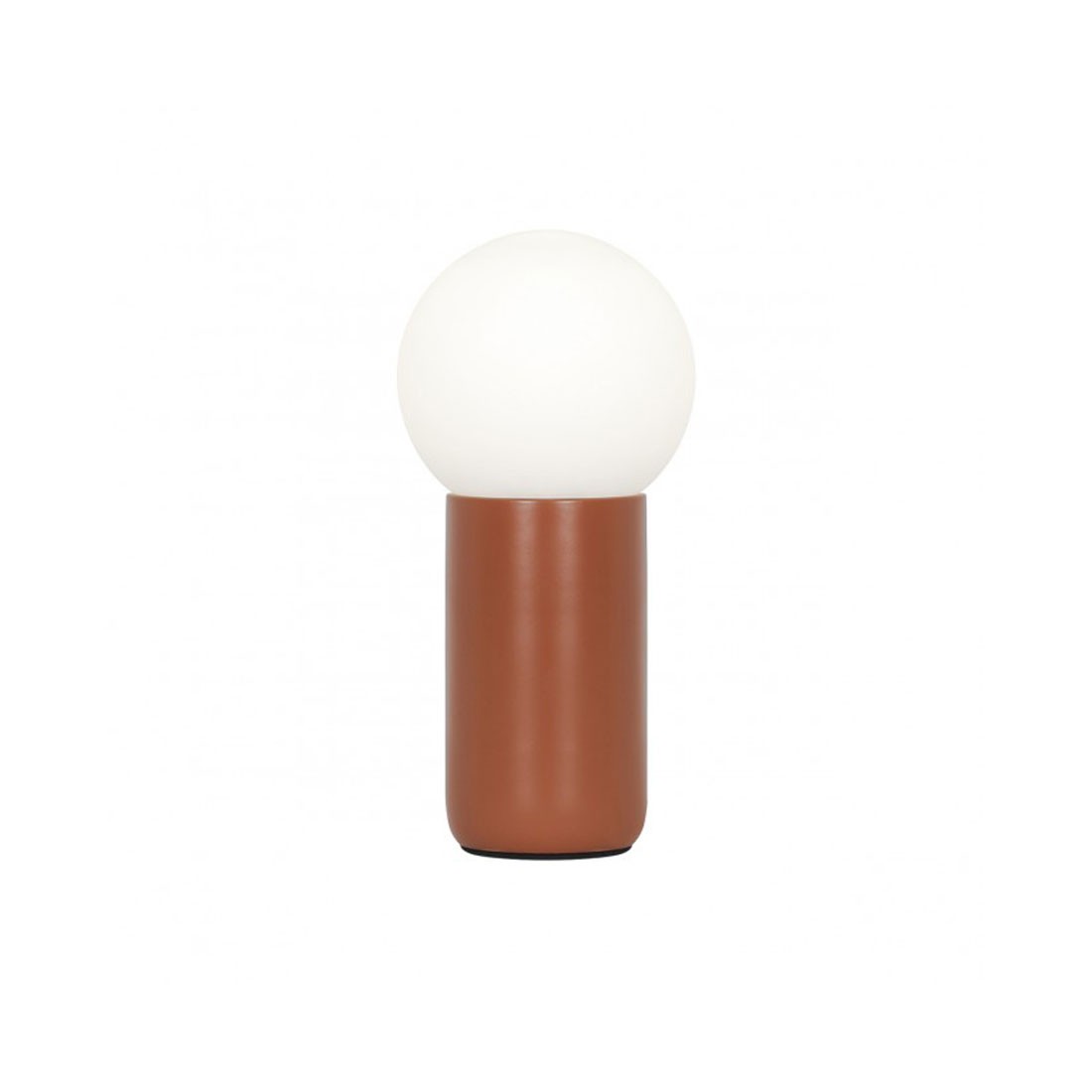 Lámpara sobremesa de 1 luz de metal terracota y tulipa de cristal bola blanca de 12 cm.