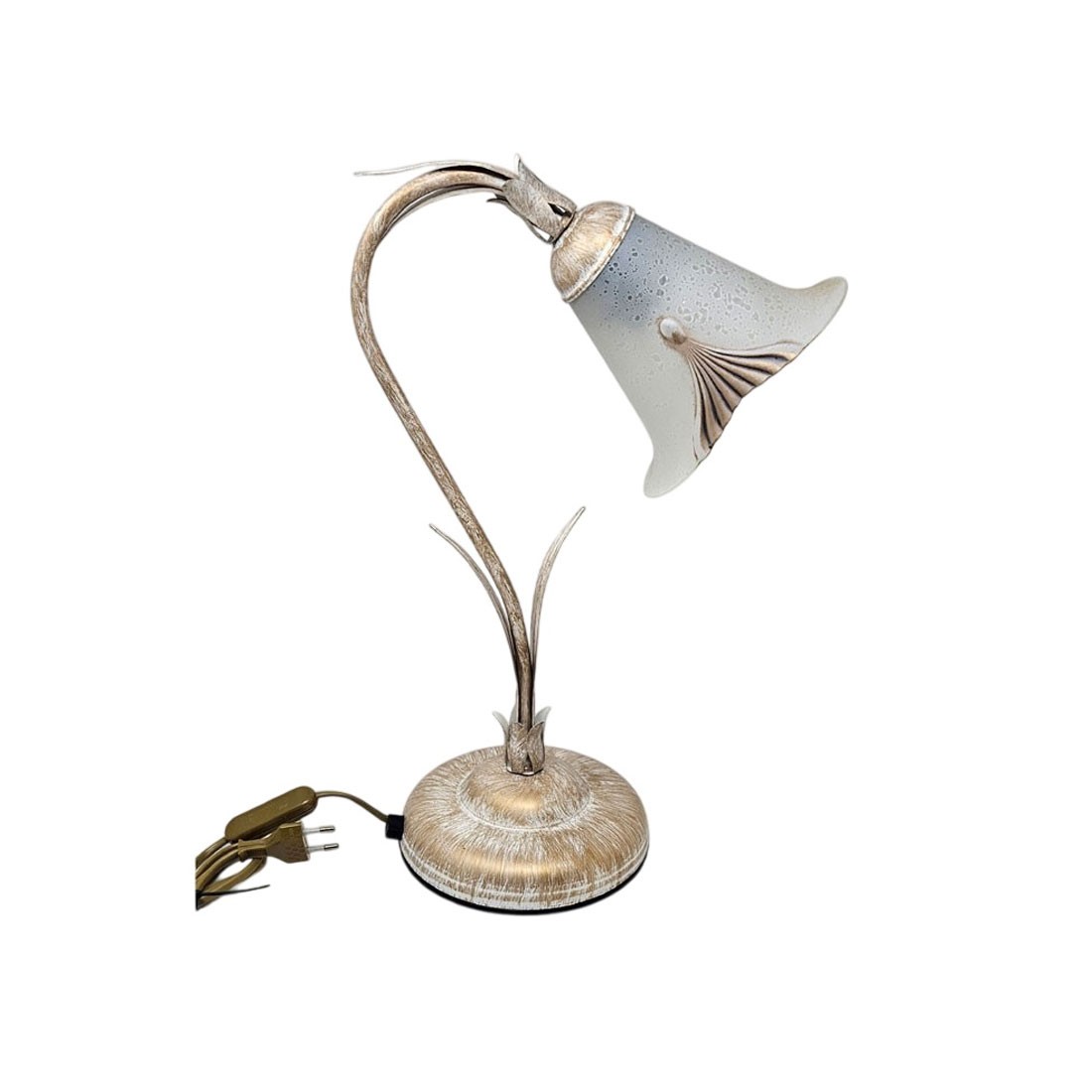 Lámpara de sobremesa de 1 Luz de metal crema patinado en oro con ramas y tulipa de cristal.