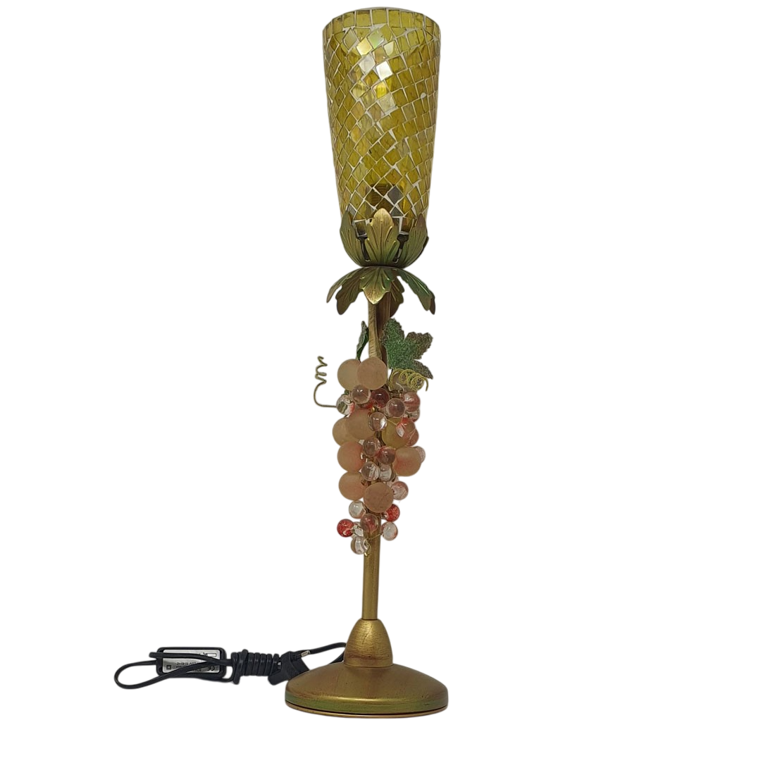 Lámpara de sobremesa de 1 Luz de metal acabado en oro policromado con detalles de uvas y tulipa de mosaico