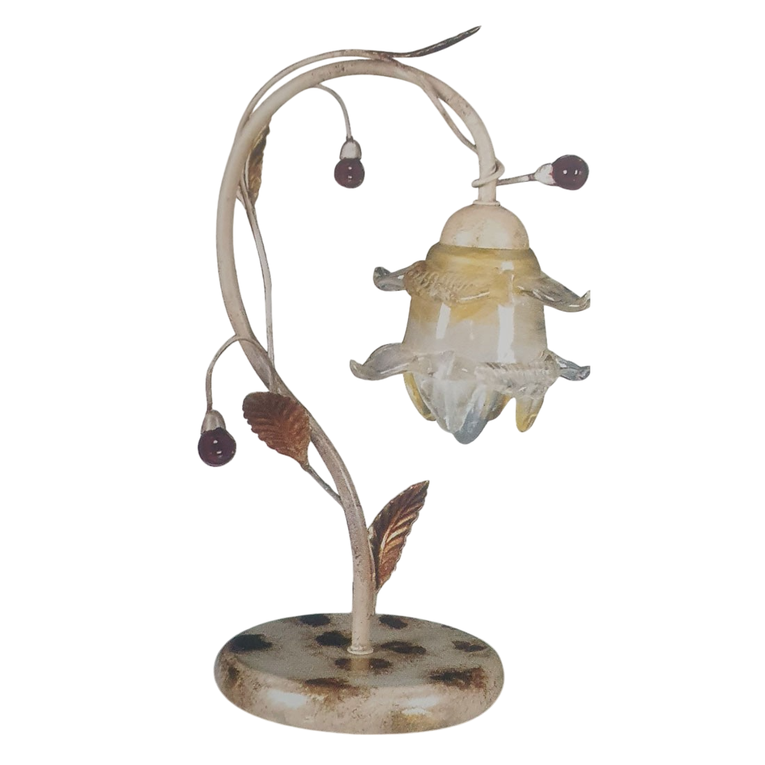 Lámpara Sobremesa forja crema de 1 Luz con tulipa de cristal de murano.