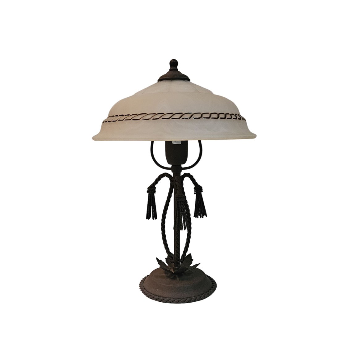 Lámpara Sobremesa forja marrón de 1 Luz con tulipa de cristal.