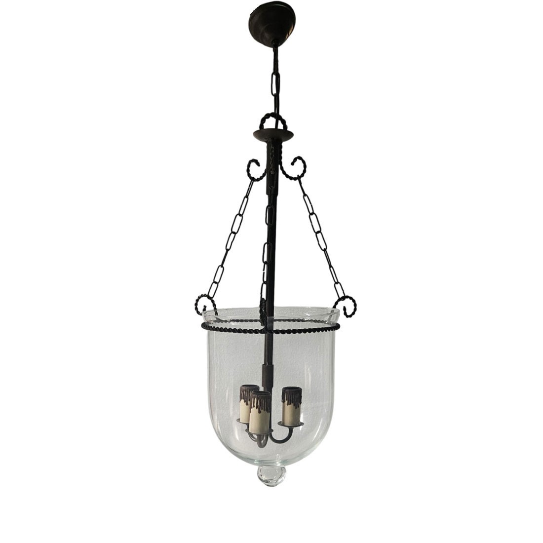 Lámpara de Techo 3 Luces Acabado marrón con Tulipa Cristal transparente.