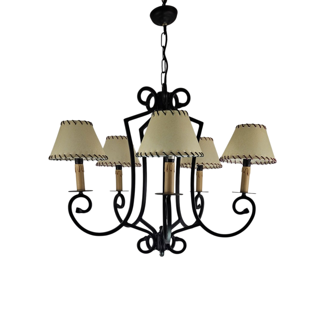 Lámpara Negra 5 Luces con Pantalla Pergamino