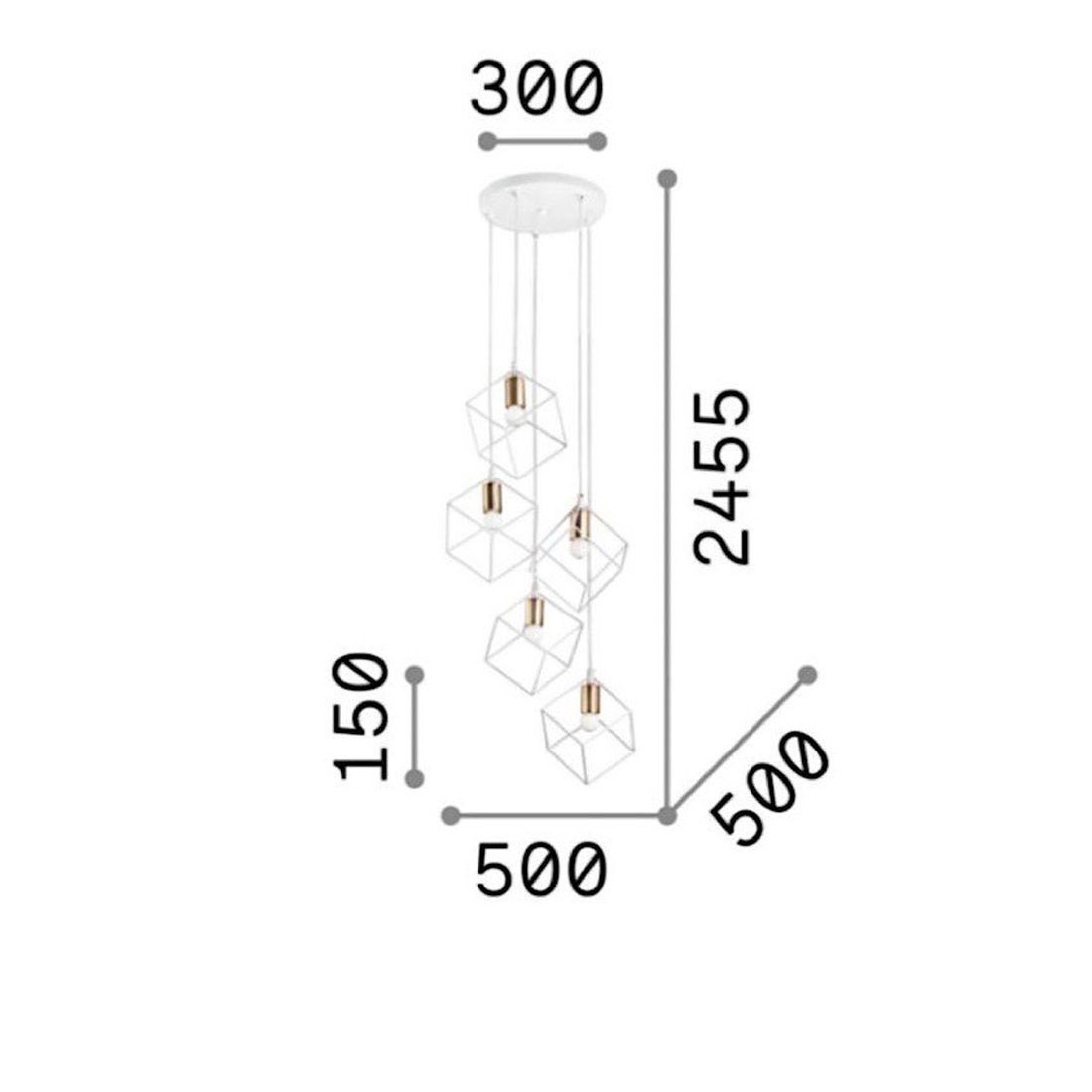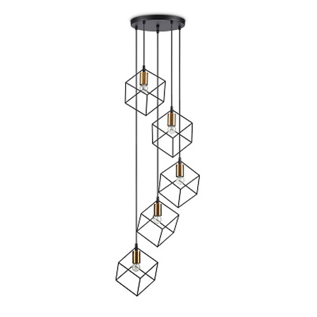 Lámpara de Techo Colgante con 5 luces de metal acabado negro mate con cubierta de portalámparas en latón satinado.