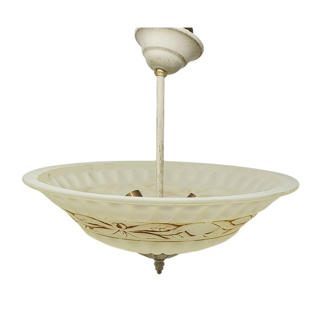 Lámpara de Techo semiplafón con tulipa de cristal de 35 cm de diámetro beige y armazón de forja crema patina dorada
