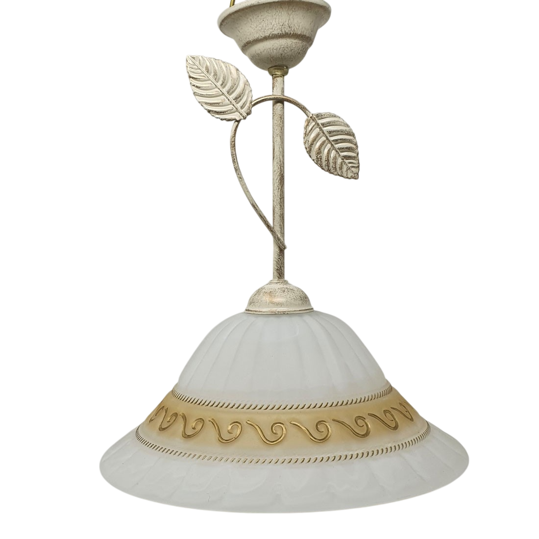 Lámpara Colgante Forja Hoja Crema Patina Dorada