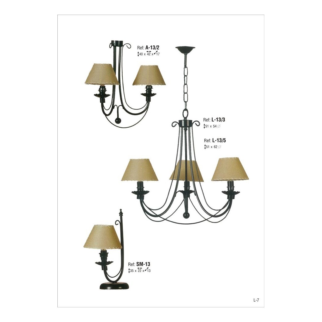 Lámpara de Techo de 3 luces de Forja Negro con Pantallas Pergamino. Bombillas Bajo Consumo.
