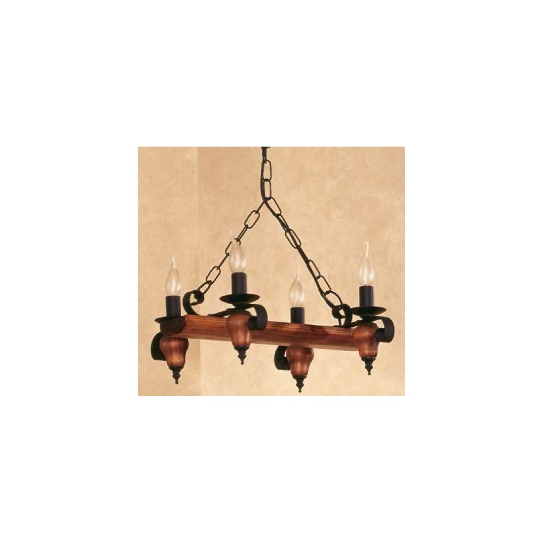 Lámpara de Techo de 4 Luces realizada en madera y hierro acabado Negro Mate. Altura ajustable. Lámparas fabricadas en España.