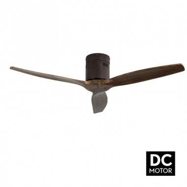 Marca: FabrilampVentilador de Techo AGUILON, cuerpo de metal acabado marrón, 3 aspas madera roble. Mando a distancia incluido, Temporizador 1/4/8 horas. Función inversa invierno / verano.
